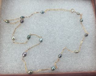 18k Yellow Gold Necklace with 15 Tahitian Keshi Pearls