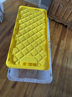 57 Gal. Tough Storage Tote in Clear with Yellow Lid And Red$30Schenectady, NY