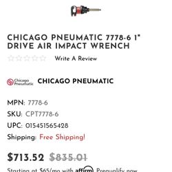Chicago Pneumatic 1” Drive CP7782-6$550Chicago, IL