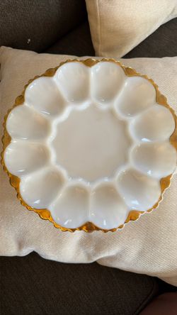 Vintage Anchor Hocking White Glass Deviled Egg Plate Gold Trim$15Marysville, WA