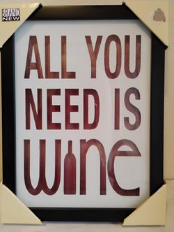 NEW ~ 12" FRAMED GLASS ~ ALL YOU NEED IS WINE$4Las Vegas, NV
