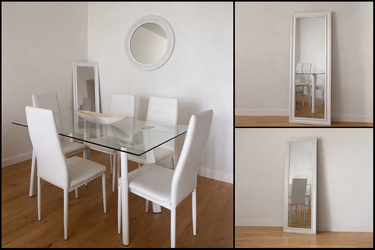 Modern Glass Dining Set with 4 White Chairs + 2 Decorative Mirrors – Excellent Condition$100Halndle Bch, FL