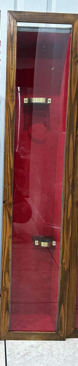 Vintage Wall-Mount Rifle Display Case - Wood & Glass with Red velt"$120Riverside, CA