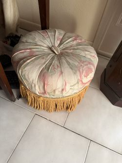 vintage-style round tufted ottoman (or tuffet) featuring a floral print and bullion fringe trim$100Las Vegas, NV