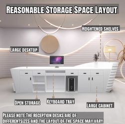 120" Reception Desk - Modern Front Desk Checkout Counter and Retail Counter with Curved Design, No Assembly Required, Customizable Logo, Suitable for $4,300Los Angeles, CA