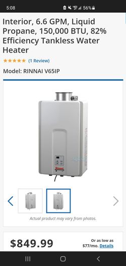 Brand New never used Liquid Propane, 150,000 BTU, 82% Efficiency Tankless Water Heater