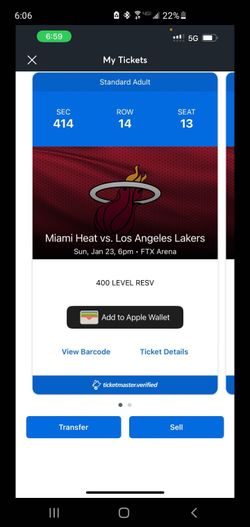Lakers vs Heat tickets for Sunday 23rd 6 pm in Miami$200Wellington, FL