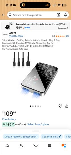 3-in-1 Wireless CarPlay Adapter & Android Auto, Plug & Play, Bluetooth 5.0$40Ontario, CA