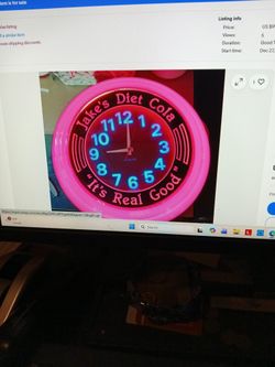 1970s Jake's Diet Cola Soda Neon Clock 18 In Wide 5 1/2 In Deep$999Federal Way, WA