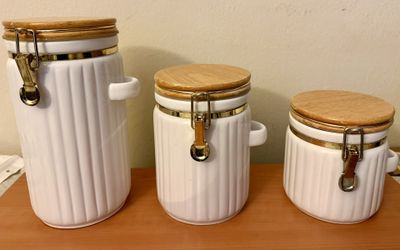 Ceramic Canister Set with Airtight Wood Lids - 3-Piece Kitchen Storage for Flour, Sugar, Coffee etc$25Houston, TX