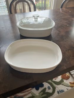 Set of two white ceramic baking dishes with lids.$15Alexandria, VA