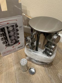 New 17pc Stainless Steel Carousel Spice Rack with Glass Jars$10Irvine, CA