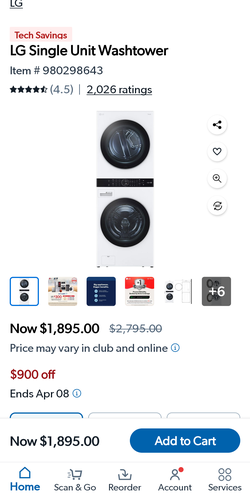 Washer 4.5 cu ft Dryer 7.4 cu ft stacked apartment size combo with wifi app$1,000Grandview, MO