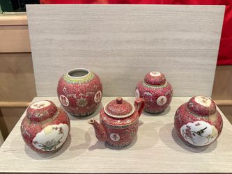Vintage Chinese Rose Medallion Porcelain Ginger Jar & Teapot Set – 5 Piece$120Vernon Hills, IL