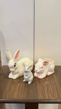 Vintage White Ceramic Bunny Décor Set – Rabbit Figurines & Planter$30Vernon Hills, IL