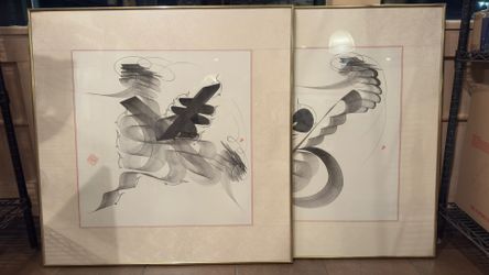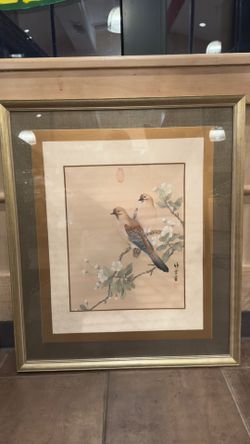 Set of two framed traditional Chinese bird art pieces. Each artwork features detailed birds perched on flowering branches with classic calligraphy an$200Vernon Hills, IL