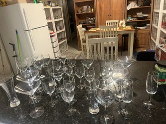 30-Piece Clear Glass Wine, Martini, Champagne, Beer Glasses & Goblets Set $1 for 1 glass or $30 for$30Miami, FL