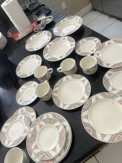Ceramic Geometric Pattern Dinner Set Glossy Plates Bowls Cups Round$150Miami, FL