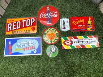 Porcelain Gas & Soda Advertising Sign Lot – 8 Signs – Coca Cola, Piggly Wiggly, Nesbitt’s – Heavy 18 Gauge Steel, 8 Pieces,$195Covina, CA