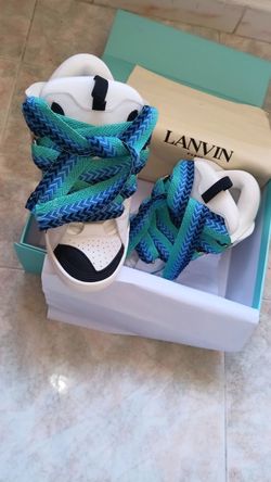 Lanvin Curb Blue Green White Chevron Lace Up Low Top Men's Athletic Sneakers$120Lake Charles, LA