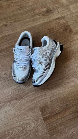 CHANEL White Silver Lace Up Low Top Logo Accent Designer Sneakers$150Lake Charles, LA