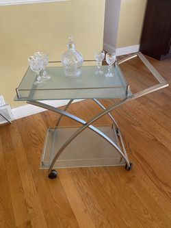Frosted glass rolling bar cart$85Mequon, WI