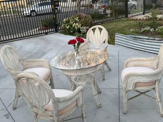 Beautiful Rustic Rattan Patio Dining Set – Glass Table + 4 Cushioned Chairs – Excellent Condition $200Los Angeles, CA