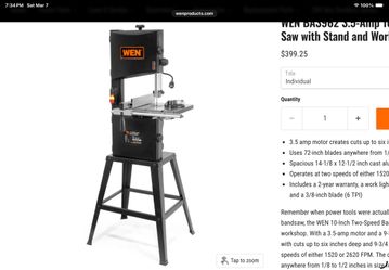 Wen 10” band saw$200Clayton, NC
