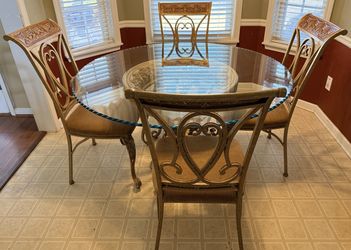 For Sale: Elegant Glass‑Top Dining Table & 4 Ornate Metal Chairs – Great Condition$300Snellville, GA