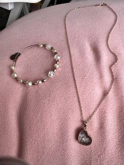 Rose Gold plated Over Silver Heart Necklace With Floating Crystals & Alex And ani Bracelet$45Portsmouth, VA
