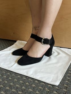 Black suede block heel shoes with buckle detail$35Palo Alto, CA