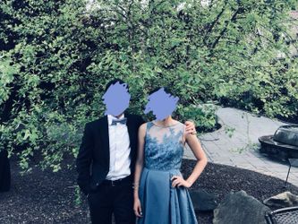 Oleg Cassini blue prom dress with lace and embroidery$200Palo Alto, CA