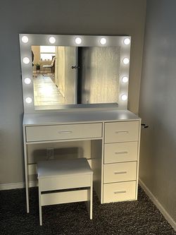 White Vanity with Lighted Mirror & Stool$150Plano, TX