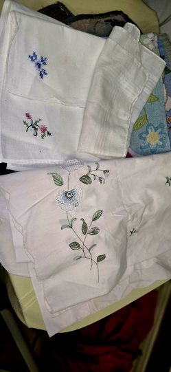LOT of vintage linens. mostly pillow cases, some handkerchiefs and 2 table clothes$55Denton, TX