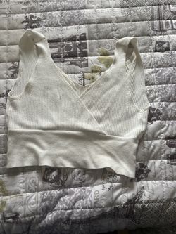 White Ribbed V-Neck Crop Top β Size Medium $2Moreno Valley, CA