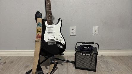 6-String Black/White Electric Guitar Squier Stratocaster by Fender Allinity Series, With Couch Handmade Guitar Strap, With Pro Line Guitar Stand, With$250Santa Clarita, CA