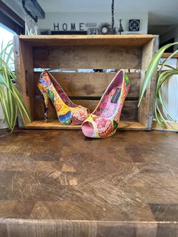 Retired Iron Fist Black and Orange Fish Print Heels$25Bourbonnais, IL