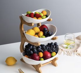 Three Tiered Fruit Stand with a Nordic Luxury Design,Ceramic bowls for storing fruits$35Grymr-devndle, KY