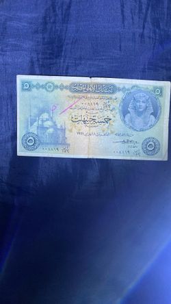 Egypt 5 Pounds Banknote – 18 February 1958 – Issued by National Bank of Egypt – United Arab Republic era – Large size note – Condition: Very Good with$60Medford, NY