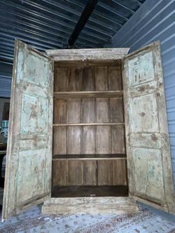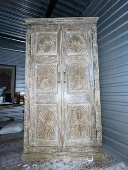 SoldAntique-Style Hand-Carved Wood Armoire / Storage Cabinet – Distressed White Wash$500Las Vegas, NV