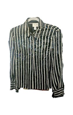 Oscar de la Renta Vintage NWT Black White Stripe Sequin Blouse Mint$350New York, NY
