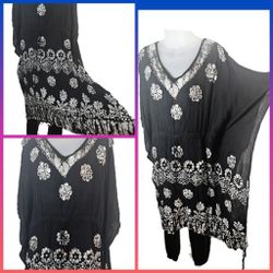 Vintage Boho Batwing Black White Embroidered Kaftan Tunic Mint Condition$175New York, NY