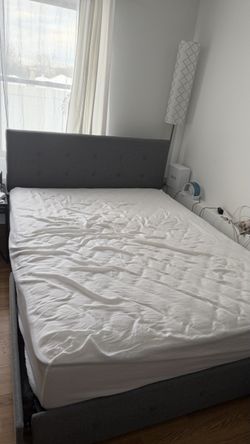 Queen size grey bed frame & ikea matress together$200Elmwood Park, NJ