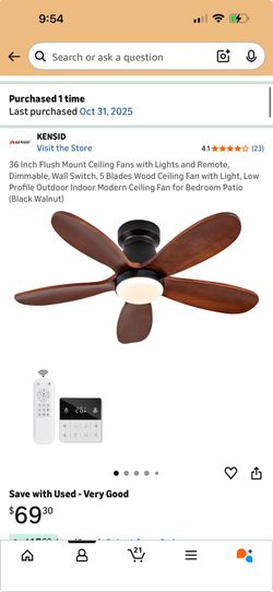 36 Inch Flush Mount Ceiling Fans with Lights and Remote, Dimmable, Wall Switch, 5 Blades Wood Ceiling Fan with Light, Low Profile Outdoor Indoor Moder$50St. Louis, MO