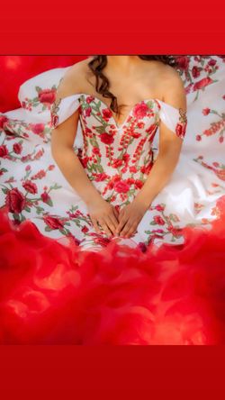 Stunning Red & White Embroidered Vestido de Quinceañera🌹$1Modesto, CA