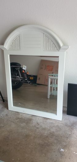 White Hardwood Mirror with Wicker Backing $35Dayt Bch Sh, FL