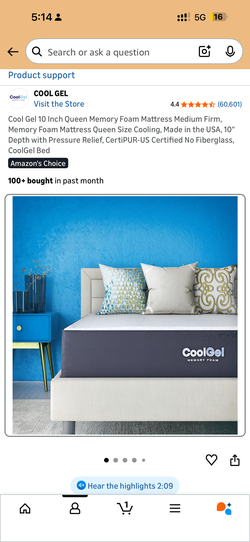 Cool Gel 10 Inch Queen Mattress$150Aliso Viejo, CA