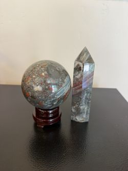Bloodstone Sphere & Tower Set – Polished Crystal Pair w/ Stand – Set or Individual Sale$95San Diego, CA