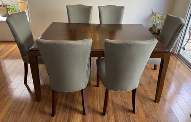 Solid Wood Dining Table with 6 Upholstered Chairs, Modern Transitional Dining Set$300Las Vegas, NV
