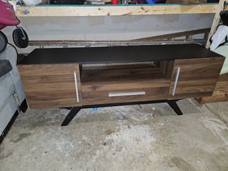 Wood grain TV stand / media console with black top and storage. Made out of partical board.$70Farmington, MI